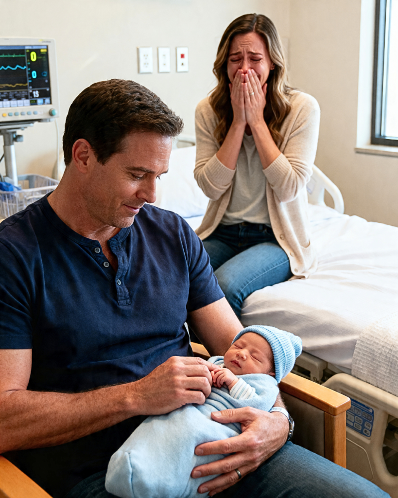 Ethan stood beside the hospital bed, struggling to catch his breath. He watched Rachel, his wife, holding their newborn with a tenderness that almost hurt to witness.