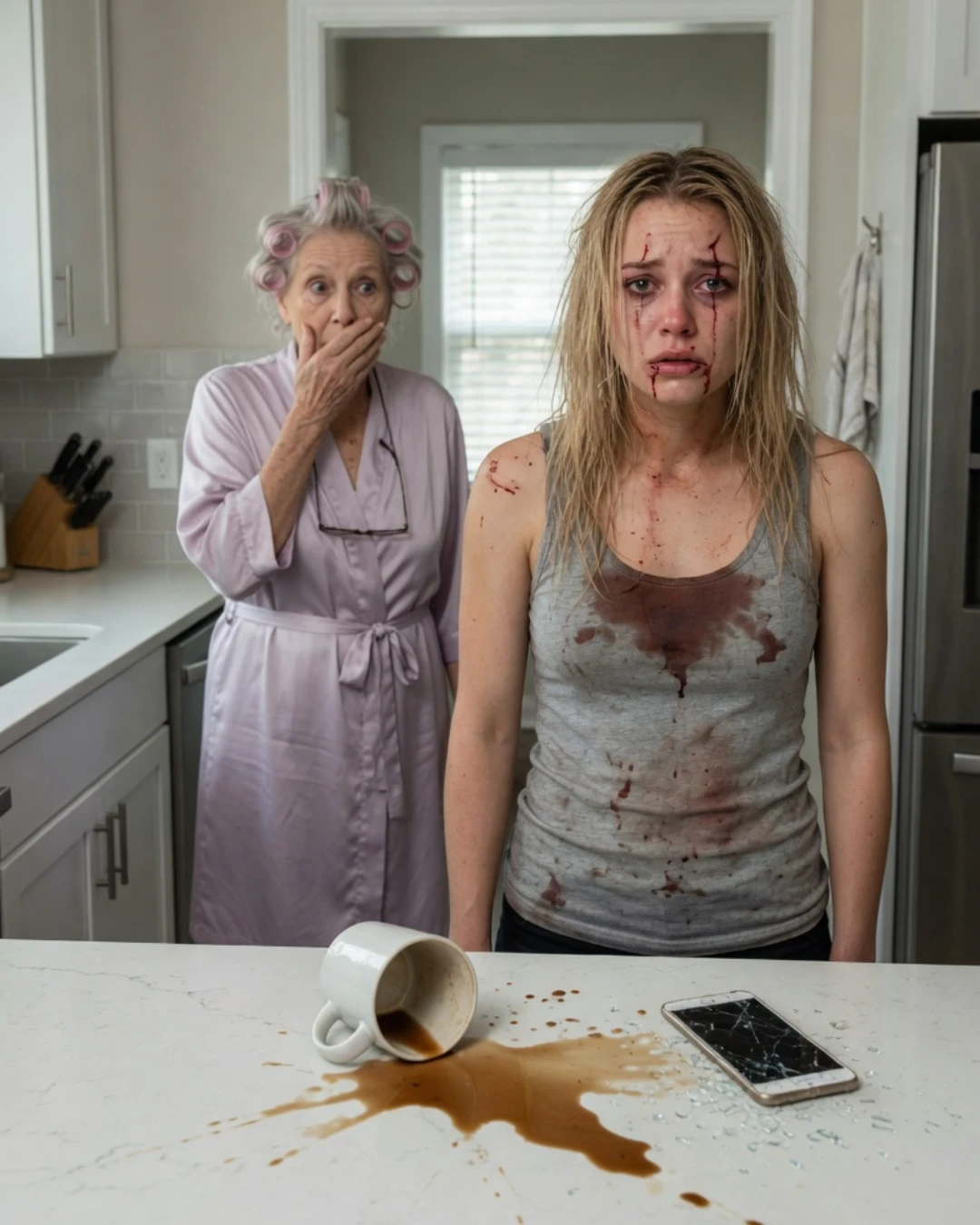 Morning arrived without softness, only a pale line behind the curtains and the smell of coffee neither of us drank.