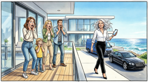 Three million dollars. Ocean-facing glass walls. White stone that caught the light like it was designed to be seen. A terrace that made the horizon look closer than it had any right to be. It wasn’t just a house. It was a statement written in architecture.